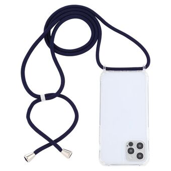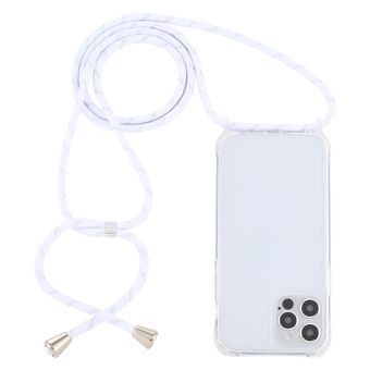 Θήκη για iPhone 14 Pro Max, Διαφανής TPU ανθεκτική στις κρούσεις με προστασία στις τέσσερις γωνίες και λουρί (Μπλε Λευκό)