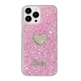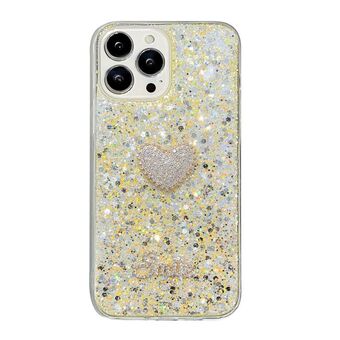 Θήκη τηλεφώνου για iPhone 14 Pro Max, με λαμπερά παγιέτες, διαμάντια, καρδιά από εποξειδική ρητίνη και TPU (Κίτρινο)