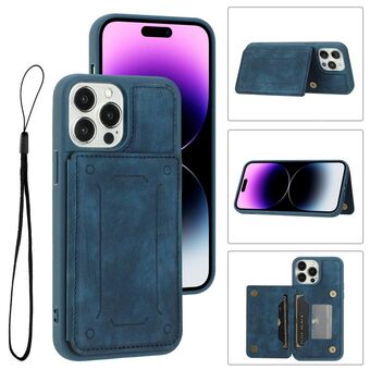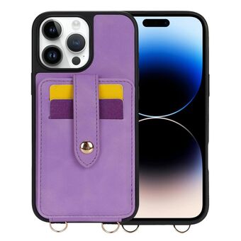 Θήκη κινητού για iPhone 14 Pro Max με λουρί λαιμού και θήκη καρτών (Μωβ)
