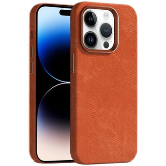 For iPhone 14 Pro Max Skin Feel Denim Leather MagSafe Phone Case(Light Coffee)