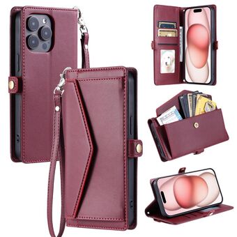 For iPhone 14 Pro Max Wallet Multi-card Slot Leather Phone Case with Lanyard(Wine Red)