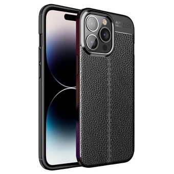 Θήκη κινητού τηλεφώνου TPU με υφή δέρματος Litchi για iPhone 14 Pro Max (Μαύρο)