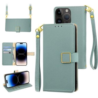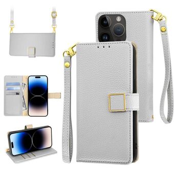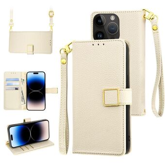 Θήκη τηλεφώνου από δέρμα με υφή λύτσι, τετράγωνη αγκράφα για iPhone 14 Pro Max, σε χρώμα ροζ χρυσό.