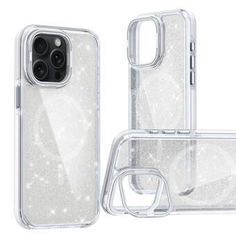For iPhone 14 Pro Max Two-color Glitter Powder Lens Holder Magsafe Phone Case(White)