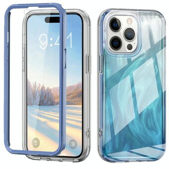 For iPhone 14 Pro Max Transparent Frame Glitter Powder TPU Phone Case(Blue)