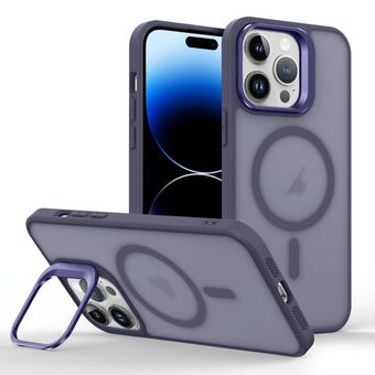 For iPhone 14 Pro Max Skin Feel Lens Holder Magsafe Phone Case(Deep Purple)