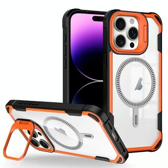 For iPhone 14 Pro Max Transparent Acrylic MagSafe Lens Holder Phone Case(Orange)