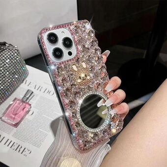 For iPhone 14 Pro Max Diamond Mirror Rabbit Handmade PC Phone Case(Pink Round Mirror)
