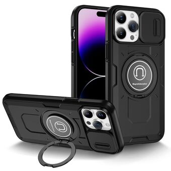 For iPhone 14 Pro Max Sliding Camshield TPU Hybrid PC Magnetic Holder Phone Case(Black)
