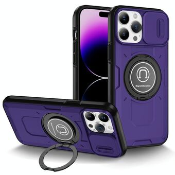 For iPhone 14 Pro Max Sliding Camshield TPU Hybrid PC Magnetic Holder Phone Case(Purple)