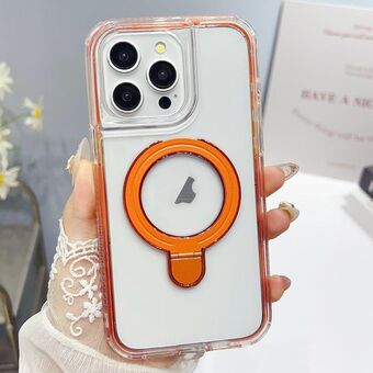 For iPhone 14 Pro Max Translucent 3 in 1 Holder MagSafe Phone Case(Orange)