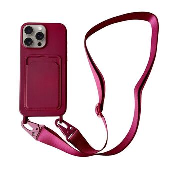 For iPhone 14 Pro Max Card Slot Liquid Silicone Phone Case with Lanyard(Wine Red)