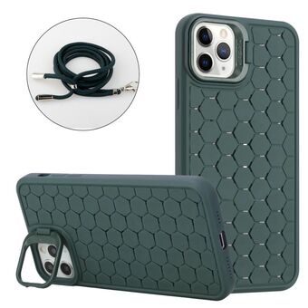 For iPhone 14 Pro Max Honeycomb Radiating Lens Holder Magsafe Phone Case with Lanyard(Green)