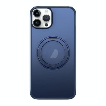 For iPhone 14 Pro Max Skin Feel Frosted MagSafe Magnetic Rotating Holder Phone Case(Dark Blue)