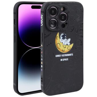 For iPhone 14 Pro Max Astronaut Pattern Silicone Straight Edge Phone Case(Planet Landing-Black)