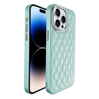 For iPhone 14 Pro Max Plaid Series 9D Electroplated Phone Case(Cyan-blue)