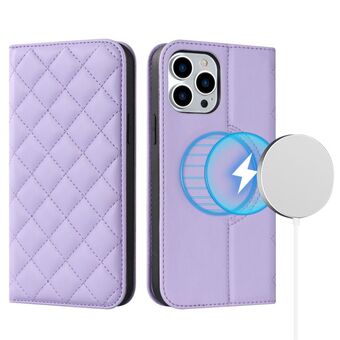 For iPhone 14 Pro Max Rhombic MagSafe RFID Anti-Theft Wallet Leather Phone Case(Purple)