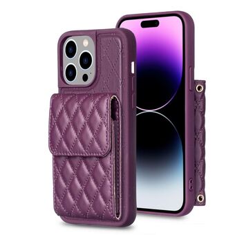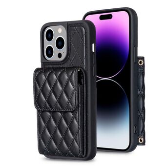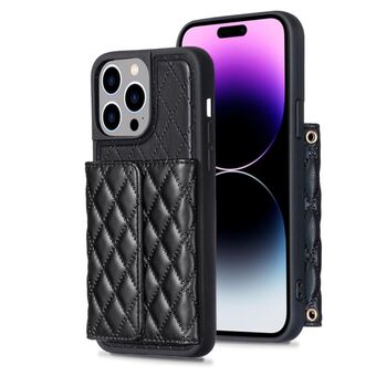 Θήκη τηλεφώνου από δέρμα με ρόμβους, κάθετη θήκη πορτοφολιού για iPhone 14 Pro Max (Ροζ)