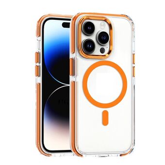 Θήκη κινητού τηλεφώνου για iPhone 14 Pro Max, Διχρωμία, MagSafe, Υβριδική TPU/PC, Διαφανής, Αντικραδασμική (Πορτοκαλί)
