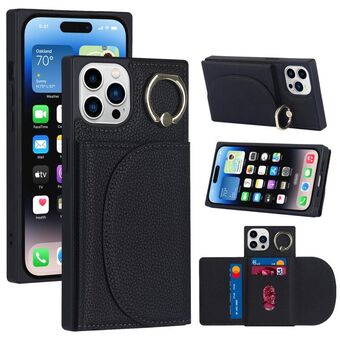 For iPhone 14 Pro Max Litchi Texture Card Bag Phone Case(Black)