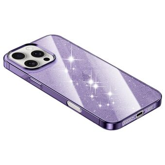 For iPhone 14 Pro Max Electroplated PC Hybrid Glitter Glass Phone Case(Purple)