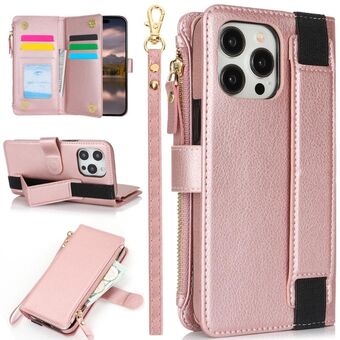 Θήκη για iPhone 14 Pro Max με Λουρί Χειρός, Πορτοφόλι με Φερμουάρ, Δέρμα με Προστασία RFID (Χρυσό Ροζ)
