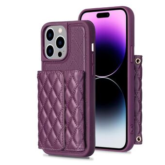 Θήκη τηλεφώνου για iPhone 14 Pro Max, οριζόντια, δερμάτινη, με ρομβικό σχέδιο (Ροζ)