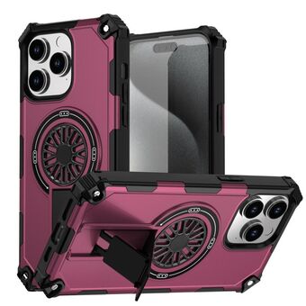 For iPhone 14 Pro Max Shockproof Kickstand Metallic Shaft MagSafe Phone Case(Purple)