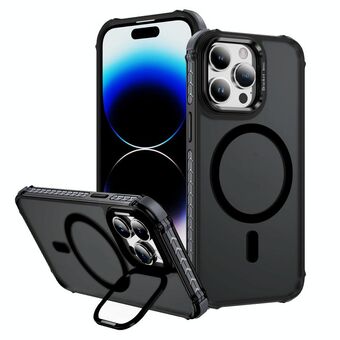 Θήκη τηλεφώνου για iPhone 14 Pro Max, διαφανής, υβριδική από PC και TPU με MagSafe και βάση στήριξης (Μαύρο)