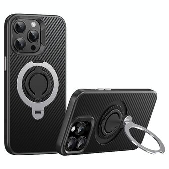 Θήκη τηλεφώνου MagSafe από ανθρακονήματα για iPhone 14 Pro Max με περιστρεφόμενη βάση 360 μοιρών (Μαύρο Χρυσό)