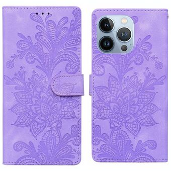 Θήκη τηλεφώνου για iPhone 14 Pro Max με δαντέλα, λουλουδάτο ανάγλυφο, μαγνητικό κούμπωμα και λουρί καρπού (Πράσινο)