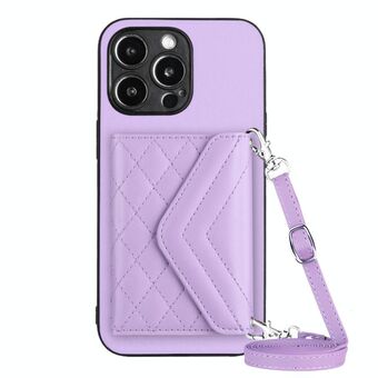Θήκη κινητού τηλεφώνου RFID με υφή ρόμβου και μακρύ κορδόνι για iPhone 14 Pro Max (Πράσινο)
