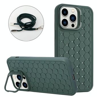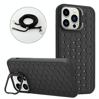 Θήκη κινητού τηλεφώνου TPU για iPhone 14 Pro Max με σχέδιο κυψελωτού και λουρί (Μαύρο)