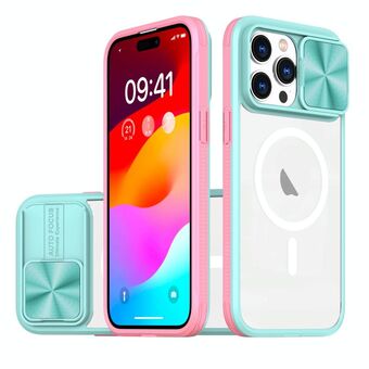 Θήκη κινητού τηλεφώνου πλήρους κάλυψης για iPhone 14 Pro Max, διαφανές ακρυλικό + PC + TPU, με συρόμενο κάλυμμα φακού MagSafe (Ροζ+Κυανό)