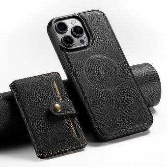 Θήκη τηλεφώνου για iPhone 14 Pro Max Suteni H20 Cross-Grain MagSafe Οριζόντια Θήκη Κάρτας Πλάτης (Μαύρο) (Suteni)