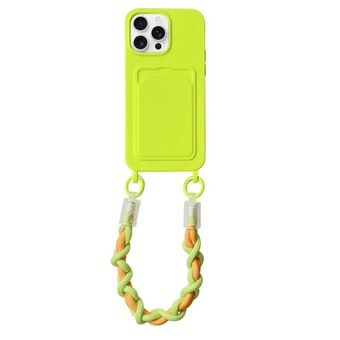 Θήκη τηλεφώνου για iPhone 14 Pro Max με υποδοχή κάρτας ντοπαμίνης και κορδόνι (Φωτεινό Πράσινο)