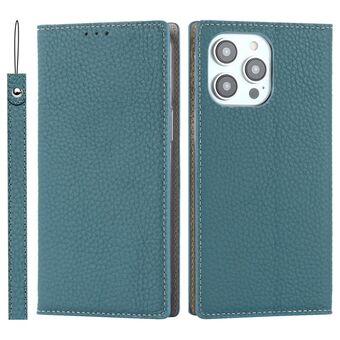 Θήκη τηλεφώνου από γνήσιο δέρμα με υφή Litchi για iPhone 14 Pro Max (Μαύρο)