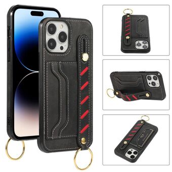 For iPhone 14 Pro Max Wristband Wallet Leather Phone Case (Black)