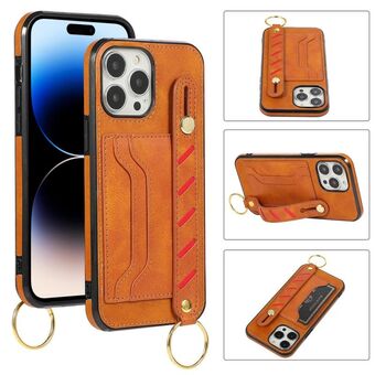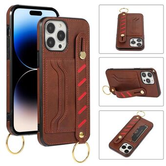 For iPhone 14 Pro Max Wristband Wallet Leather Phone Case (Brown)