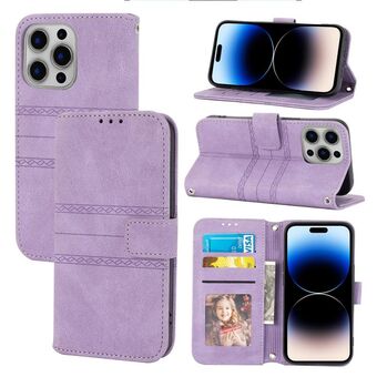 For iPhone 14 Pro Max Embossed Striped Magnetic Case (Purple)
