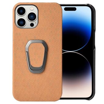 For iPhone 14 Pro Max Ring Holder Honeycomb PU Phone Case (Coffee)