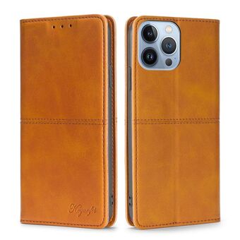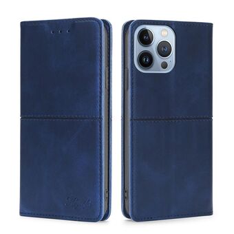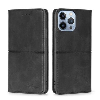 Θήκη τηλεφώνου από δέρμα με μαγνητικό κλείσιμο και υφή μοσχαριού για iPhone 14 Pro Max (Μαύρο)