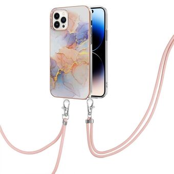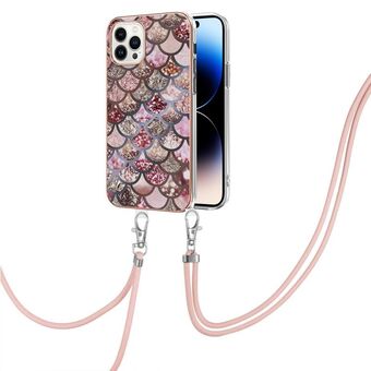 Θήκη για iPhone 14 Pro Max με Επικάλυψη Ηλεκτρολυτικής Επεξεργασίας, Μοτίβο IMD, Αντικραδασμική από TPU με Λουρί Λαιμού (Ροζ Λέπια)