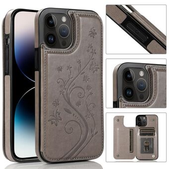 Θήκη για iPhone 14 Pro Max με Πεταλούδες, Λουλούδια και Διπλή Αγκράφα (Μαύρο)