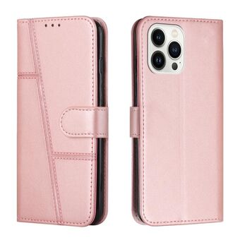 Θήκη τηλεφώνου από δέρμα με υφή μοσχαριού και αγκράφα για iPhone 14 Pro Max (Ροζ)