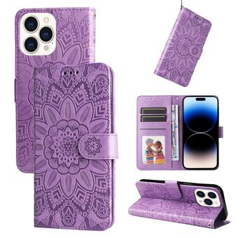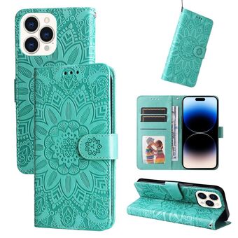 Θήκη τηλεφώνου δερμάτινη με ανάγλυφο ηλίανθο για iPhone 14 Pro Max (Πράσινο)