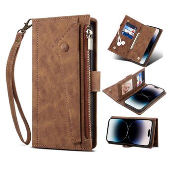 Θήκη τηλεφώνου από δέρμα πολλαπλών χρήσεων για iPhone 14 Pro Max με υποδοχή για κάρτες (Καφέ)