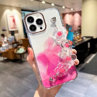 Θήκη για iPhone 14 Pro Max σε Χρυσό με σχέδιο Μάρμαρου Halo και Βραχιόλι Λουλουδιών (Ροζ)