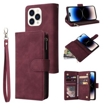 Θήκη τηλεφώνου από δέρμα πολλαπλών χρήσεων για iPhone 14 Pro Max με υποδοχή για κάρτες (Κρασί)