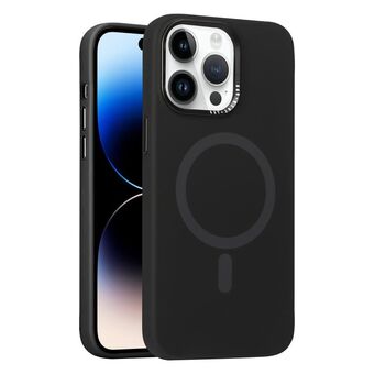 For iPhone 14 Pro Max Fine Hole Pure Color Liquid Silicone MagSafe Phone Case(Black)